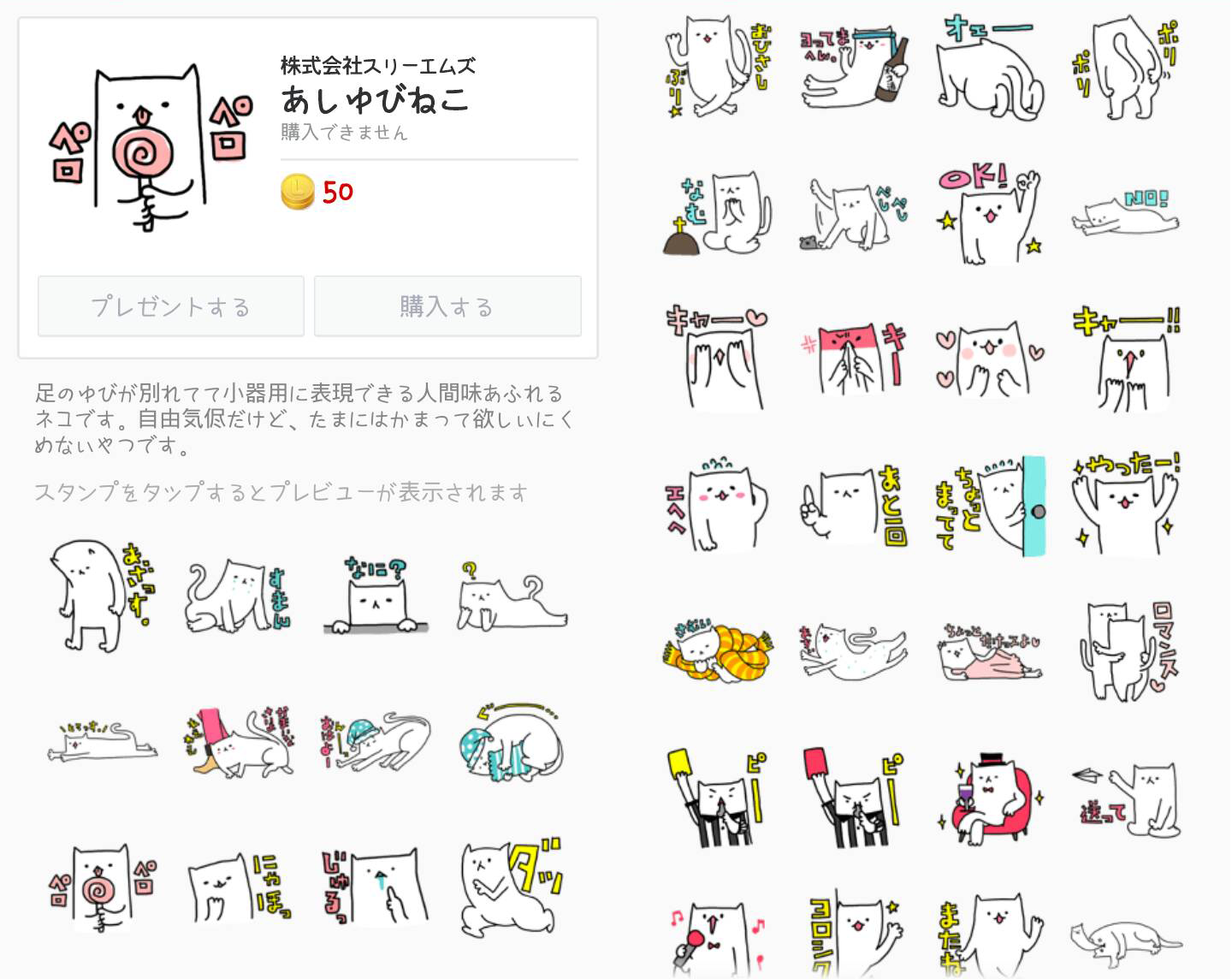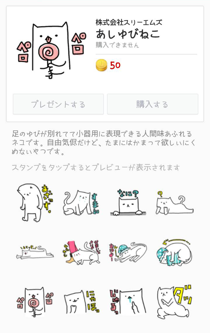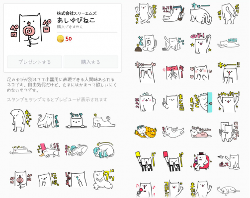 「あしゆびねこ」は弊社オリジナルのスタンプです。足の指が別れていて小器用に表現できる人間味あふれるネコ。表情豊かで愛嬌あふれるキャラがLINEトークに癒しをもたらします。