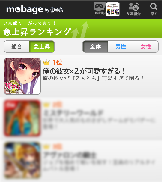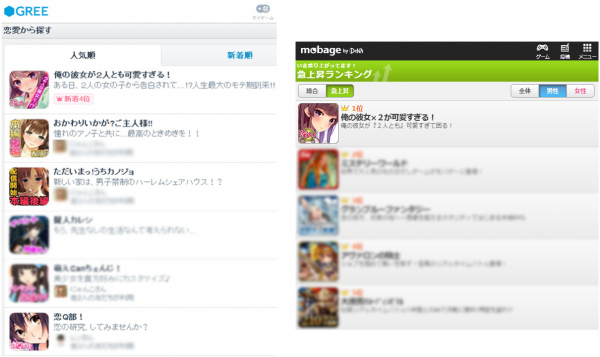株式会社モバイルファクトリー(本社:東京都品川区、代表取締役社長:宮嶌裕二)は、2014年8月5日(火)より配信開始した男性向け恋愛シミュレーションゲーム「俺の彼女が2人とも可愛すぎる!」が、グリー株式会社(本社:東京都港区、代表取締役社長:田中良和)が運営する「GREE」の恋愛カテゴリと、株式会社ディー・エヌ・エー(本社:東京都渋谷区、代表取締役社長:守安功)が運営する「Mobage」の男性カテゴリにおいて、2014年9月10日(水)に1位を獲得しました。