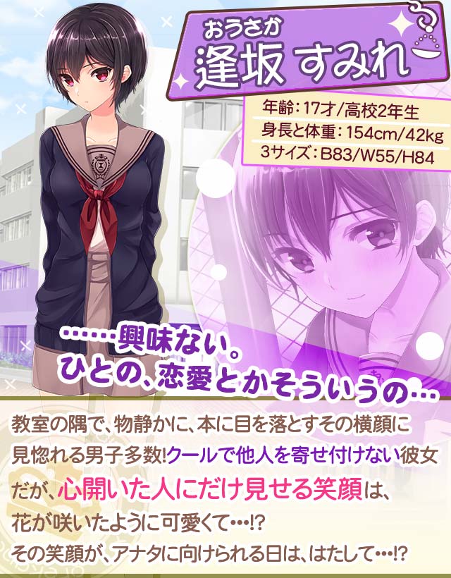 モバイルファクトリーは「感動を持ち歩け。」というブランドメッセージの下、皆様に愛されるサービスの提供を目指します。男性向け恋愛シミュレーションゲームでは、飽きずに楽しんでいただけるようなイベントやシナリオの充実に努めて参ります。