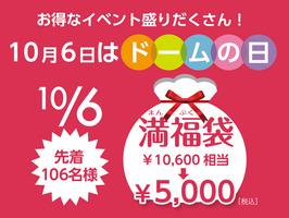 東京ドームホテル 札幌(所在地:北海道札幌市中央区大通西8丁目、代表取締役社長 総支配人:土井良一)は、10月6日を“ドーム(106)の日”と称し、10月中は106に因んだイベントやセールやお得なフェアを開催いたします。10月6日限定の第1弾イベントでは、ホテルレストランペアランチ券3店舗分やホテルメイド焼き菓子など、10,600円相当のお得がたくさん詰められた福袋「満福袋(まんぷくぶくろ)」を先着106名様に5,000円にて販売いたします。