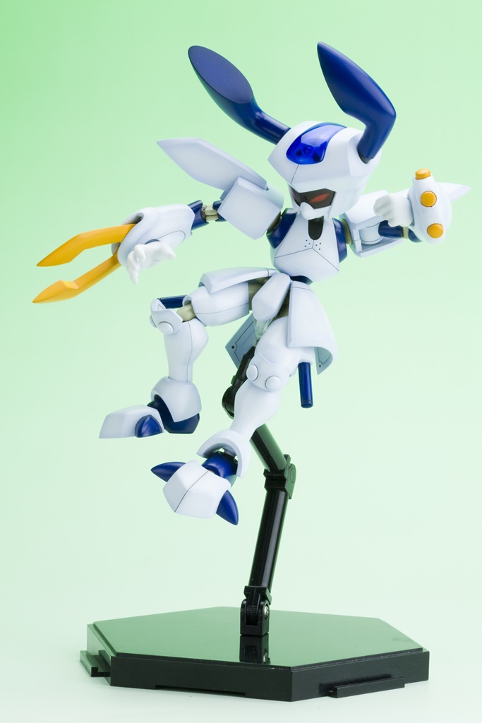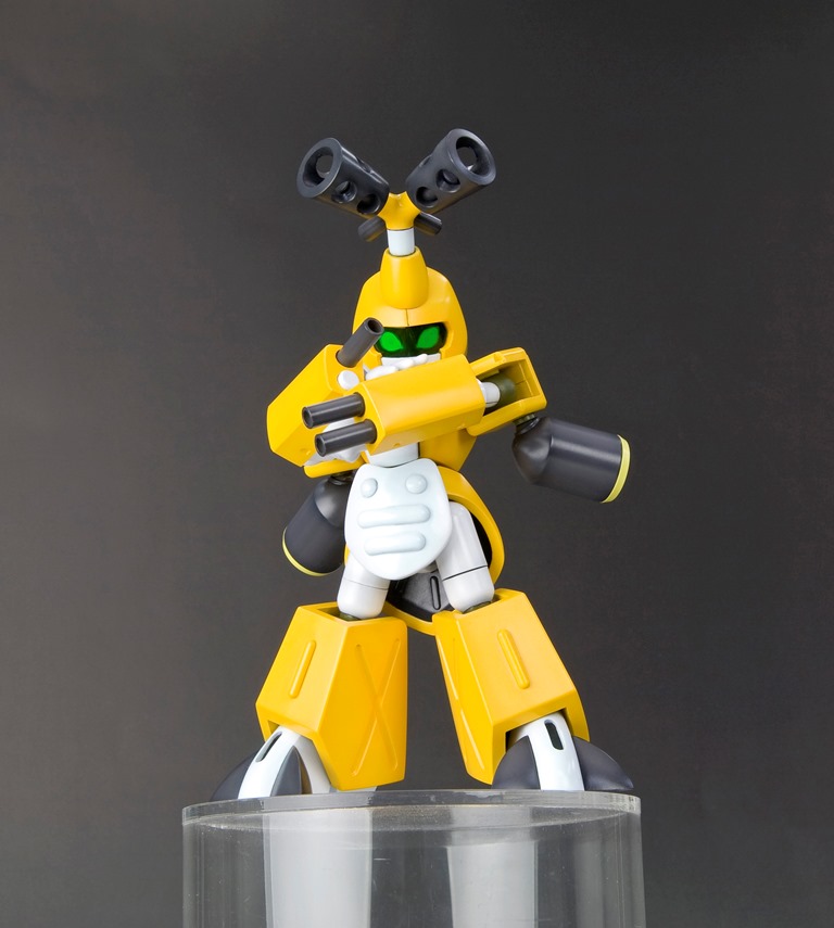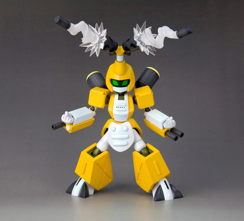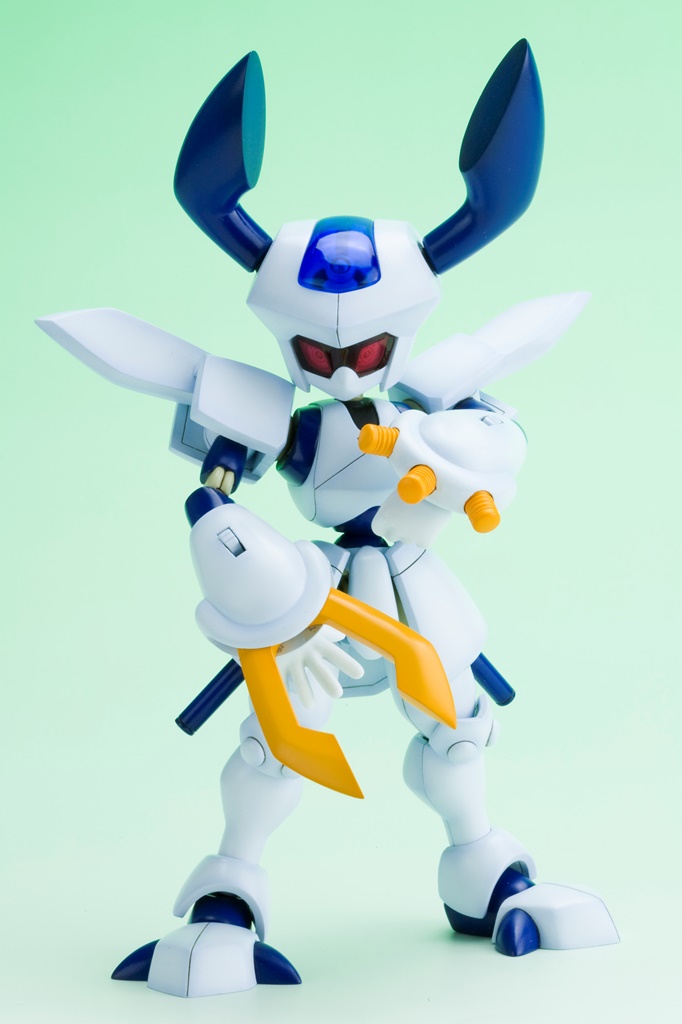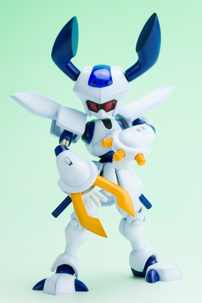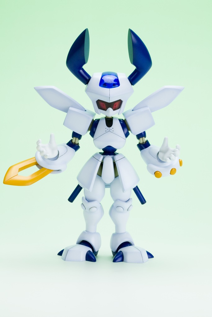 シルエットの再現は勿論の事、両機体とも表情の違うバイザーが4種類付属、背中には作中同様メダルを装着することができます。同シリーズプラモデルは全て組み替え可能のため、自分だけのメダロットをつくることが出来ます。また、本体はマルチカラーキットのため、組立てるだけで設定に近い姿に仕上がります。