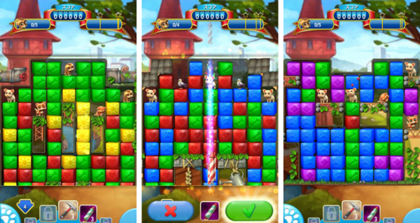 ・ 同じ色のブロックを2つ以上マッチさせて消し、ペットを助けよう!ステージはどんどん複雑化するぞ!