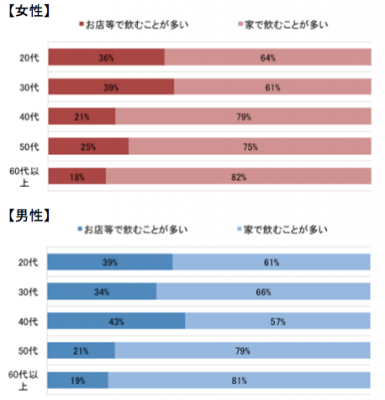女性の場合、20代~30代は「家で飲むことが多い」方は6割となりました。