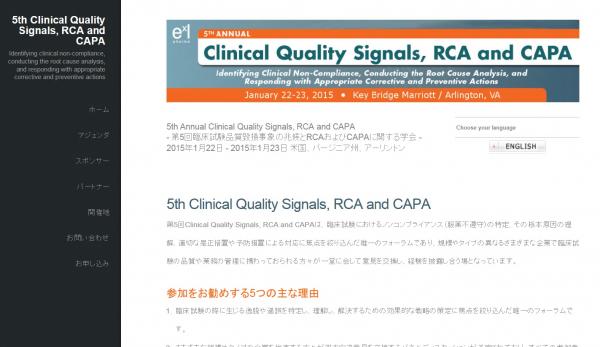 学会:「5th Annual Clinical Quality Signals, RCA and CAPA-第5回臨床試験品質毀損事象の兆候とRCAおよびCAPAに関する学会」