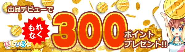 「にじいろ☆」で初めて商品を出品した方に300円分のポイントをプレゼント。