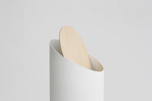 “Swing Bin”は、デザイナー・竹内茂一郎によるプロダクトで、ネジや留め金を一切使わず、「本体」と「フタ」のたった2つのパーツで構成されており、洗練されたデザインもさることながら、フタが優しく上品に閉まるところが特徴です。