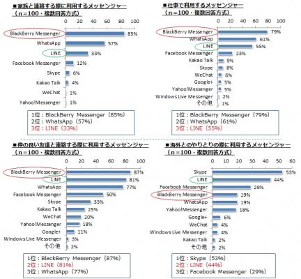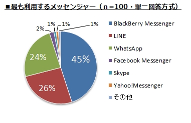 ・最も利用しているメッセンジャーは「BlackBerry Messenger(BBM)」(45%)、