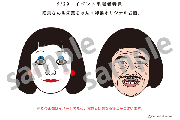 来場者特典あり:「細貝さん&朱美ちゃん・特製オリジナルお面」をスタッフよりお渡しいたします。