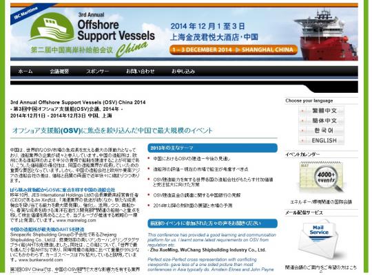 会議:「3rd Annual Offshore Support Vessels (OSV) China 2014-第3回中国オフショア支援船(OSV)会議 2014年」