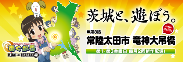 茨城県の観光地・名物にスポットをあてた茨城県産アニメーション『あぐかるPLAY WITH IBARAKI編』の新作第8話が9月19日(金)よりニコニコ動画、YouTubeで公開となりました。アニメは約1ヶ月間無料で視聴できます。