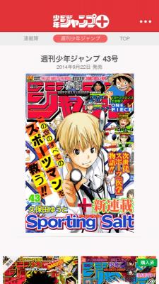 紙で発行している「週刊少年ジャンプ」を雑誌発売日と同日のAM5時から、「少年ジャンプ+」内で毎号有料配信いたします。9月22日発売の「週刊少年ジャンプ」43号から「少年ジャンプ+」で電子版のサイマル配信を行いますが、「週刊少年ジャンプ」配信開始記念として、2014年9月13日発売の「週刊少年ジャンプ」42号を10月22日までの期間限定で無料配信いたします。購読料は単号で300円、定期購読料は月額900円です。定期購読をすると「週刊少年ジャンプ」本誌に加え、定期購読特典として「週刊少年ジャンプ」の増刊誌で年6回発行予定の「ジャンプNEXT!!」も読むことができます。