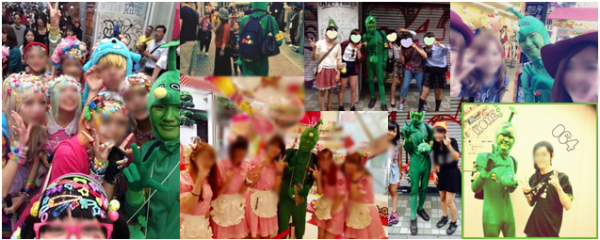 全身緑タイツの苔の妖精リアルコケくんが、10月18日(土)に行われるフラッシュモブの参加者を集めるために