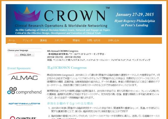 学会:「4th Annual CROWN Congress- 第4回 臨床研究業務/ワールドワイドネットワーキング学会」