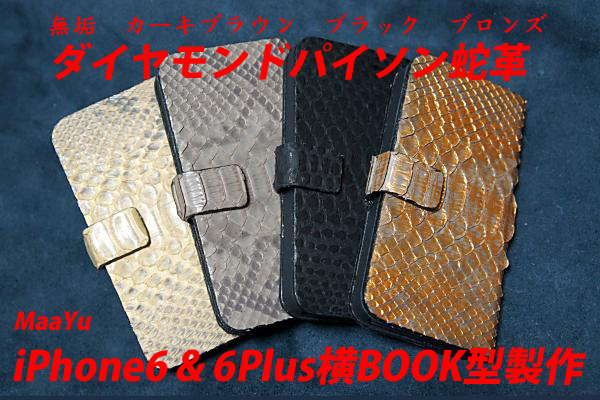 ソフトな本蛇革のiPhone横BOOK型ケース
