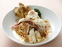 日本料理小石川では、タラバ蟹の天婦羅をお塩で召し上がっていただく以外に、タラバ蟹入りの天つゆをかけて豪華天丼にすることもできます。レストランパティオでは、タラバ蟹入りのリゾットにタラバ蟹入りのスープをかけてスープリゾットになり、中国料理緑花では、タラバ蟹のチリソース和え麺にタラバ蟹入りの豆乳ソースをかけてまろやかかつたっぷりとタラバ蟹をお楽しみいただけます。