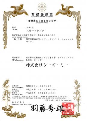 株式会社シーズ・ミー(本社:東京都港区、代表取締役:大塚真史)が提供をするスマホアプリ『スピードランチ(URL:http://www.speedlunch.jp/)』の商標権について、2014年8月末、特許庁より商標登録証を受領しましたことをお知らせします。