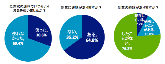 「この秋の連休でいつもよりお金を使いましたか?」という質問に対して「使った」と回答した主婦の方は30.6%となり、およそ3人に1人が連休にレジャーなどでお金を使う機会が多かったことが予想されます。