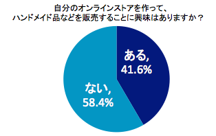 WEBサイト制作の知識がなくても、簡単に無料でオンラインストアが作れるサービスが広がっていますが、「自分のオンラインストアを作って、ハンドメイド品などを販売することに興味がある」と回答した方は 42.6%で、約半数の主婦の方が、オンラインストア運営に興味を持っていることが分かりました。