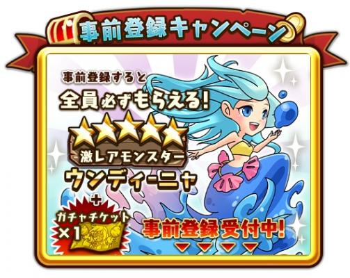 事前登録していただいた方もれなく全員に“激レア★5モンスター『ウンディーニャ』”、さらに事前登録6万人記念のガチャチケット×1枚をプレゼント!
