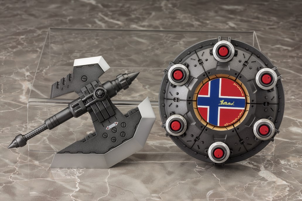 マリンカイザーの特徴的な兵装「ギガ・アックス」と「LM軽戦シールド」が付属。細かなディテールに加え、コトブキヤの得意とするフルアクションでアレンジされた重厚感あふれるプロポーションで蘇ります。多色成形によって組み上げるだけで設定に近い仕上がりになります。さらに本体、盾のマーキングなどは付属のデカールを使用することによって、より高いクオリティで仕上げることが可能です。
