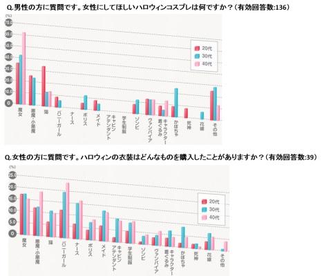 どの世代からも票を集めたのは「魔女」や「小悪魔系」でしたが、世代が上がるにつれ、「バニーガール」や「制服系」など、より女性らしいものが好まれるようです。