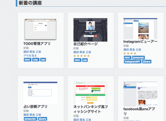 CodeFactoryはまず最初に自分が作ってみたいアプリを選び、そのアプリを実際に作りながらプログラミングを学ぶことができるサービスです。