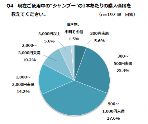■“シャンプー”の“購入価格” 「500~1,000円未満」が37.6%でTOP 7割近くが1000円未満