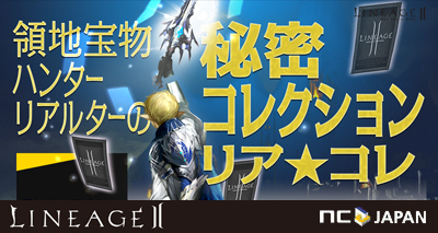 PC向けオンラインゲーム『リネージュ2~Epic Tale of Aden~(以下、『リネージュ2』)』をサービス、運営しているエヌ・シー・ジャパン株式会社(東京都渋谷区、代表取締役:金 澤憲(キム テクホン))は、2014年10月1日(水)定期メンテナンス終了後から2014年10月22日(水)定期メンテナンス開始前までの期間「領地秘宝ハンターリアルターの秘密コレクション~リアコレ~」を実施いたします。