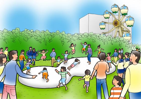 「かまたえん」では都内で唯一の屋上観覧車「幸せの観覧車」、親子で交通ごっこが体験できる「エコライド」や、飛び跳ねて遊ぶ空気膜遊具「風の丘」、アメリカンテイストのカーニバルゲームが楽しめる「プラザカーニバル」で遊ぶことができます。