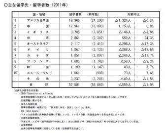昨今の少子化に伴い、日本人の海外留学者数は減少傾向にあるものの、「ハイリスク・ハイリターン」を象徴に世界をリードし続けるアメリカは、いまだ留学市場最大のマーケットであり、毎年最も多くの留学者がアメリカへ渡航しています。文部科学省が平成26年3月に公表した、2011年統計データによると、日本人の海外留学者総数は57,501人(対象前年比559人(約1.0%)減)となり、そのうち留学者の最も多い国はアメリカの19,966人で、次いで中華人民共和国(17,961人)、イギリス(3,705人)でした。