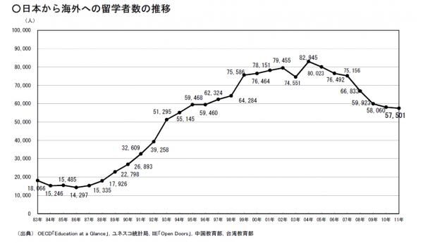 昨今の少子化に伴い、日本人の海外留学者数は減少傾向にあるものの、「ハイリスク・ハイリターン」を象徴に世界をリードし続けるアメリカは、いまだ留学市場最大のマーケットであり、毎年最も多くの留学者がアメリカへ渡航しています。文部科学省が平成26年3月に公表した、2011年統計データによると、日本人の海外留学者総数は57,501人(対象前年比559人(約1.0%)減)となり、そのうち留学者の最も多い国はアメリカの19,966人で、次いで中華人民共和国(17,961人)、イギリス(3,705人)でした。