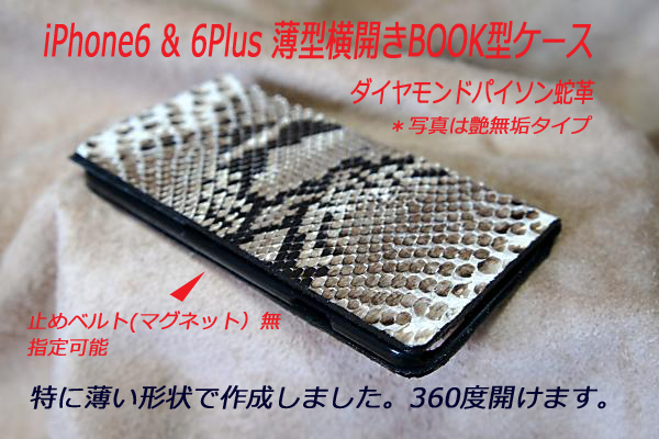 超薄型iPhone横開き本蛇革BOOK型ケース (日本製)価格 :15000円 【税込み】