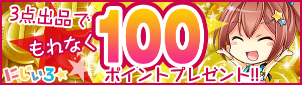 期間中、「にじいろ☆」にて3品出品するごとに、アプリ内で使用できる100円分のポイントをプレゼント!