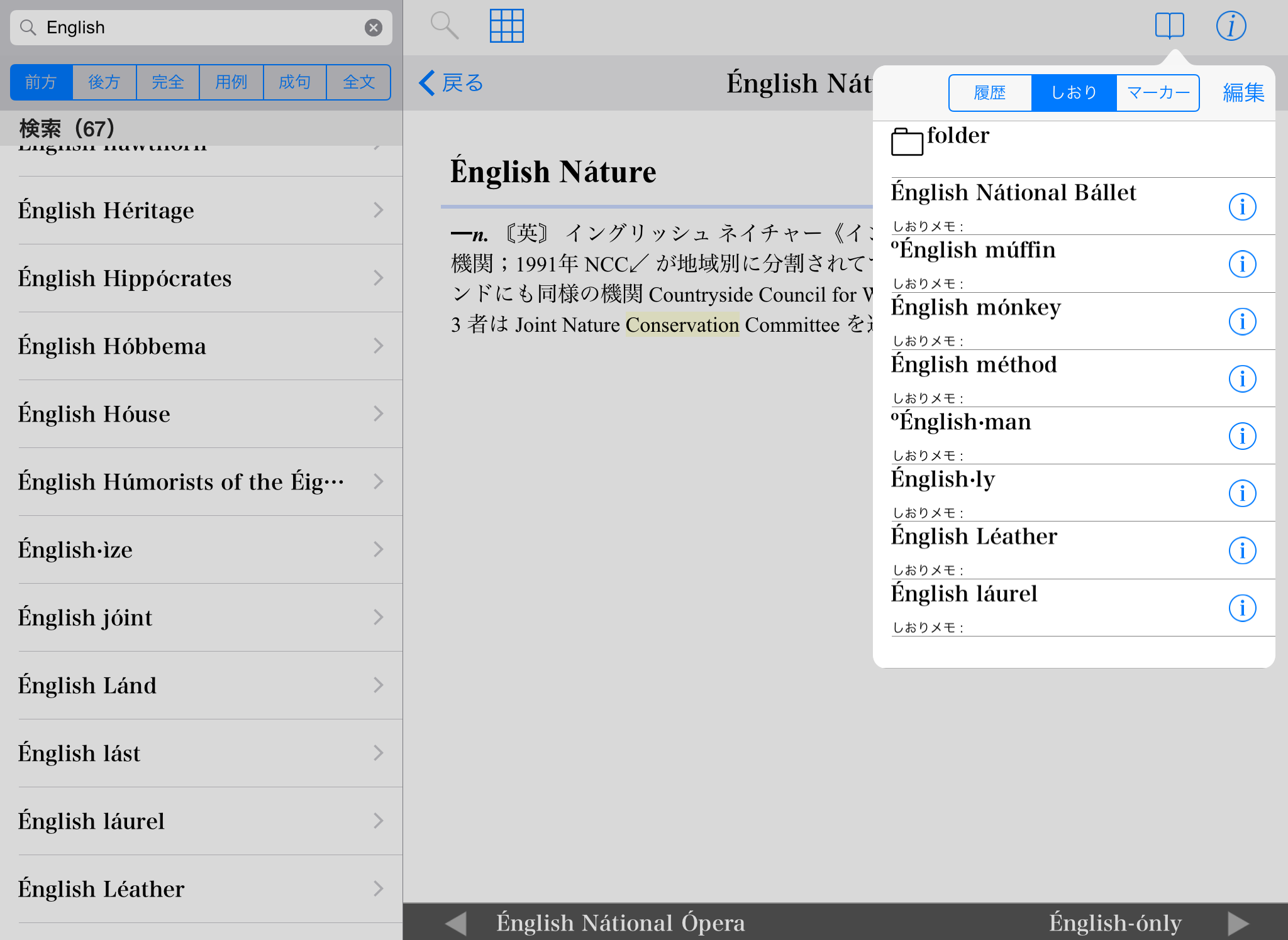 ●連続する辞書引きに役立つ履歴表示、しおりメモなど。
