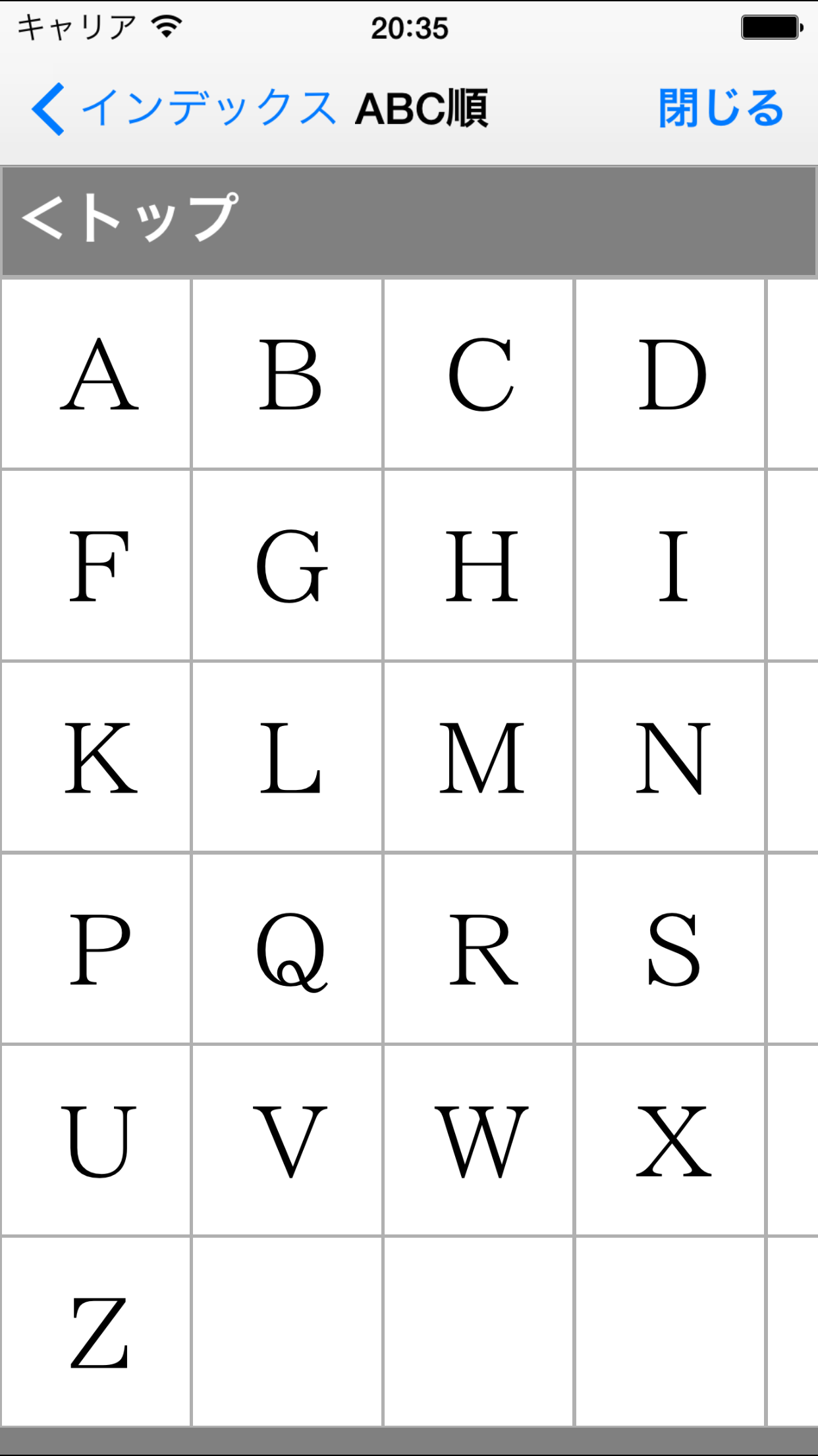 iOS 7に対応し、画面を最大限活用した「タッチパネル検索」を搭載。単語を記したパネルを所狭し並べることで周囲の単語を見渡すこともでき、従来不足しがちとされてきた一覧性を補いました。