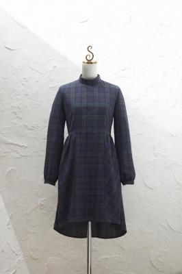 タイトなラインがギャザーに切り替わるスカートがポイント。ブルゾンにもコートにも合わせられるワンピースです。