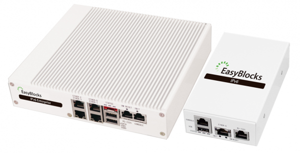 昨今、IPv4アドレスの枯渇問題を想定したネットワークインフラの構築が必要となってきておりますが、「EasyBlocks IPv6」はIPv6アドレスの設定に対応したDNS・NTPや、DHCPのサービスが利用可能で、IPv6アドレスの運用開始時も移行の負荷を削減する事が出来ます。また、導入規模に合わせて選択可能な二つのラインナップを用意しており、小規模なネットワークへの導入に最適な”EasyBlocks IPv6”と、数百、数千ユーザーを超えるネットワークにも対応可能な”EasyBlocks IPv6 Enterprise”を用意しております。