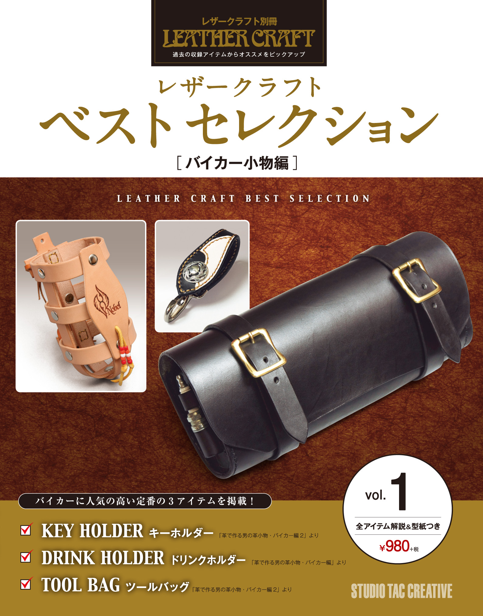 出版社スタジオ タック クリエイティブでは、本年10月25日(土)に書籍『レザークラフト ベストセレクション vol.1~3』を発刊し、全国有名書店、amazon、楽天ブックスなどで順次販売致します。