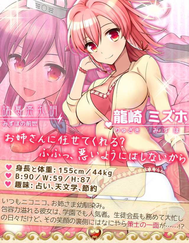 諸葛亮孔明の生まれ変わりで、包容力溢れるお姉さま「龍崎ミズホ」