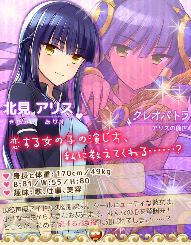 クレオパトラの生まれ変わりで、クールビューティーな声優アイドル「北見アリス」