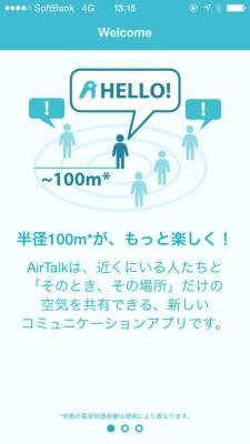 このAirBeaconテクノロジーTMを用いた次世代メッセージングアプリAirTalk(エアトーク)は、特に災害時など電話やインターネットが使用不可な非常事態の場合においても自分を中心として直径200mの範囲に対し「助けて!」などのメッセージを送受信できると同時に自分の位置を知らせることが可能です。