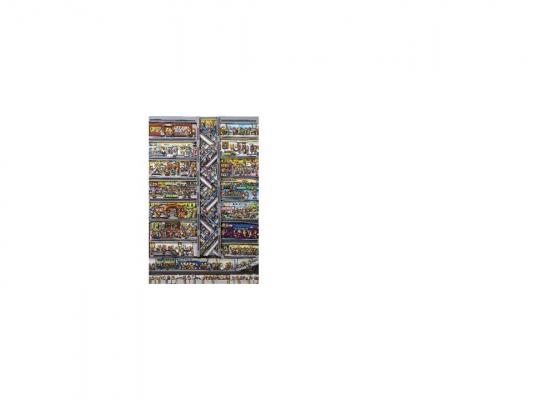 作品には様々な表情、姿勢の人物が配置され作品全体のほのぼのとした雰囲気を醸し出している。例えば、1人の人物も、10パーツほどの部品を重ね合わせ、組み合わせて構成されている。版画やリトグラフとは異なり同じ作品を作る事はできない。