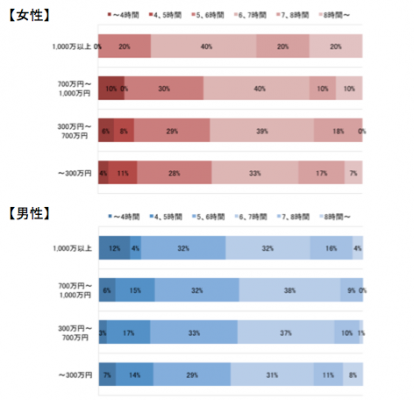 ただ、女性と一つ異なるのは、「~300万円」の方の睡眠時間も長いということです。