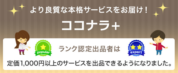 そういったご要望にお応えするため、本日より、認定ランクに応じて、定価1,000円、3,000円、5,000円のサービスを出品できる新機能「ココナラ+(ココナラプラス)」を開始します。