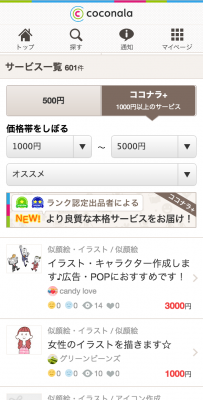これまでは、ココナラのサービスは全て「定価500円」でしか販売できませんでした。2013年11月以降、ランク認定ユーザー限定で500円~5,000円の追加オプション料金を設定できるようにはなっておりましたが、定価そのものは500円を維持してきたことから、出品者からは「定価が500円では安価すぎて出品できないサービスがある」とのご意見をいただいておりました。