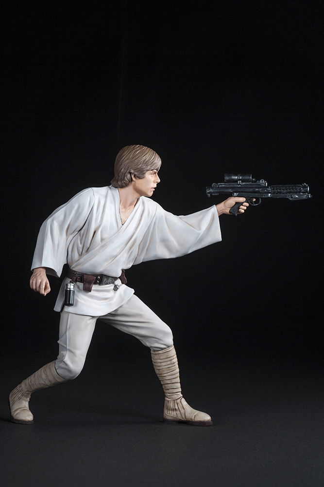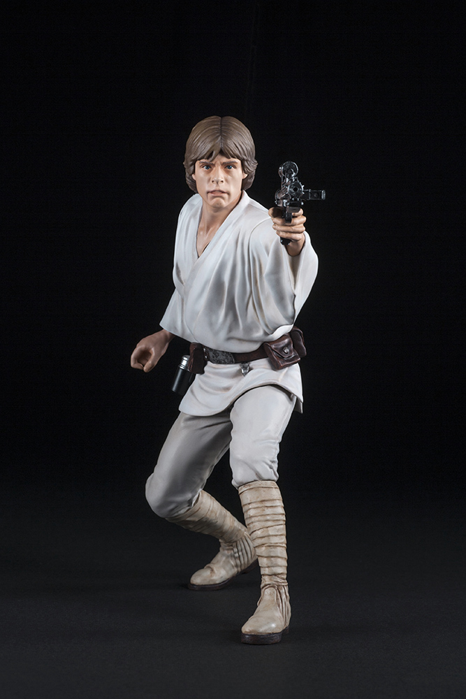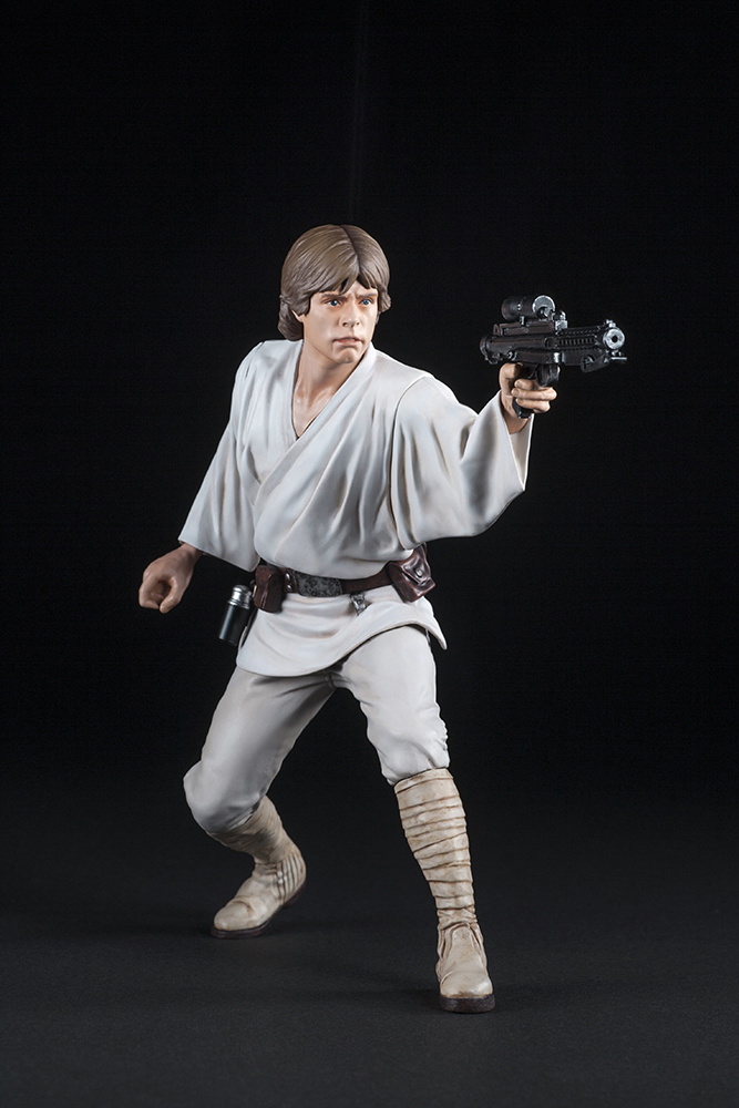 新作「スター・ウォーズ/エピソード7」でも出演が決定した旧3部作の主人公「ルーク・スカイウォーカー」、その妹「レイア・オーガナ」の兄妹を公開前の画像のポーズを元に、それぞれコトブキヤ初となるEP4登場時のコスチュームでの立体化です。ルークは差し替えでライトセーバーとブラスターの両方を楽しめます。足裏にはマグネットが入っているため、メタルプレート製ベースの上で自由度の高いディスプレイが可能。同シリーズのR2-D2 & C-3POやハン・ソロ & チューバッカと合わせてお楽しみいただけます。