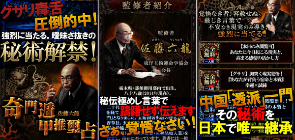 ・アプリ名称:『【直伝】当たりすぎ◆秘術占い◆佐藤六龍』