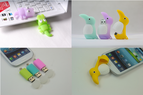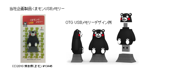 スマートフォン向けカスタムOTG USB製作サービスは、企業ユーザー、USBメモリー販売会社、広告会社、制作プロダクションなど のオリジナルデザインを製品化し、ユニークなOTG USBメモリー製品を作成するサービスです。 出来合いのデザインに名入れをするサービスではなく、デザイナーや販売促進ご担当者にも満足いただけるクリエイティブな製品を作成します。 USBにプロモーション用のコンテンツ(ビデオ、音楽、PDFカタログ等) を入れて効果的な販促戦略を行うこともできます。従来のプラスチック成型でなく、ゴム素材成型を利用することで小ロット(300個~)、短期間での製品化を行い、低価格でのご提供を可能としています。