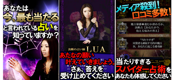 ・アプリ名称:『濃度99%◆欲望叶う【スパイダー占い】LUA 』