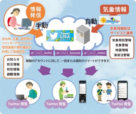 「TweetLISA Online」は地域の気象情報を自動でツイッターへ配信したり、複数のツイッターアカウントを一元管理することができます 。